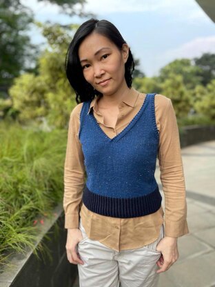Keyhole Tank is a simple tank top I designed with a keyhole element at the back neck and a V-neck at the front. The construction is mostly top down but to avoid seaming at the shoulder, I start at the base of the V-neck going up to the shoulder and then continue knitting the back of the shoulder to reach the same length as the front part. After that only knitting in the round to the bottom of garment.