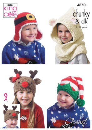 Kid's Novely Hats in King Cole DK and Chunky - 4870 - Downloadable PDF