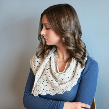 Kikyo means Campanula in Japanese. The pattern is designed to use one skein of fingering weight yarn. It is very easy to adjust to any yarn. The shape of the scarf is an asymmetrical triangle, formed by rows that get longer on only one side.