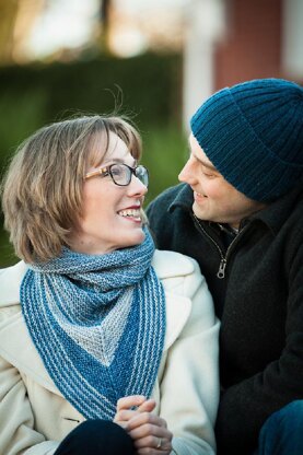 This adorable cowl will make a delightful addition to your winter ensemble. The stripes add lots of interest to a wool pea coat, and the garter stitch is so soft and cuddly, you just might not want to take it off, even when you duck into a cafe to warm up. It’s a perfect piece for a casual evening with a very special someone. The stripes are worked from opposite ends of a ball of gradient yarn, such that the contrast between the two colors becomes softer as you work from bottom to top. It’s a fast, relaxing, interesting knit and will appeal to process and product knitters alike.