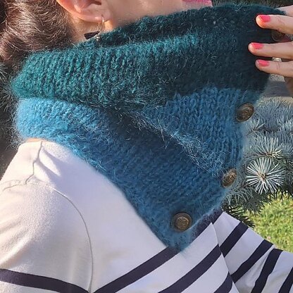 KILIM SNOOD is a quick and easy pattern for a cozy snood. The jacquard curve has no end : the line is calculated to be connected when you close the snood with the buttons.