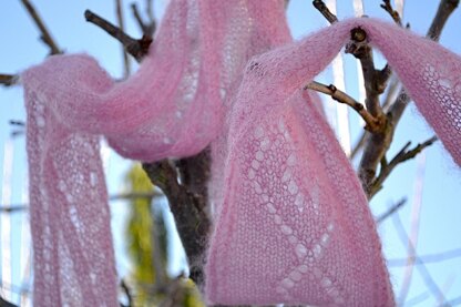 A weightless combination of cozy, delicate, pink mohair and elegant diamond lace, the Kimberly scarf is the perfect accessory for all seasons, both warm and chilly.