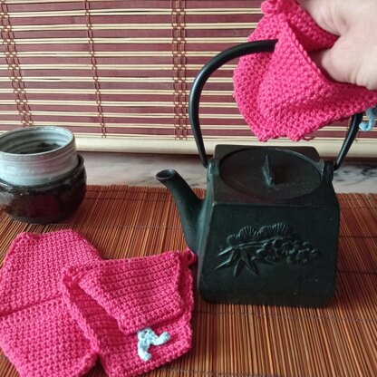 This pattern contains instructions for making cute snake-shaped pot holders. The pot holders are worked on the flat in round-trip turns, and then sewn. For a pair of pot holders, it takes less than 50 g (160 mt) of fingering (2 ply) weight cotton hook 3,5 mm E/4 or size needed to obtain gauge 12 sc x 13 rows = 5 x 5 cm.