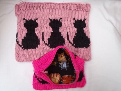 This kittie bag is a wonderful gift for any cat lovers. Small amount of stranded colorwork of the cat's silhouette is fairly simple and doable even for less experience knitter who just learned the stranded colorwork technique and need some practice. Start with provisional cast on. The bag is knit in the round, with seed stitch or 1x1 rib edge. Then continue from the provisional cast on the bottom of the bag using 3 needle bind off. Optional is to add fabric insert and zipper. Finished measurements: Small Bag: 7” (18 cm) wide x 6.5” (17 cm) tall. Large Bag: 11” (28 cm) wide x 8” (20.5 cm) tall.