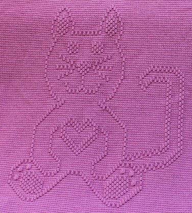 Kitty Cat Afghan, #118. This sweet kitty is sure to be a hit with your little one. The design is created by dc sts worked in the front lp of the st 2 rows below. Pattern includes written instructions as well as optional graph for baby and child size afghans, both made from worsted weight yarn. Easy to Intermediate skill.