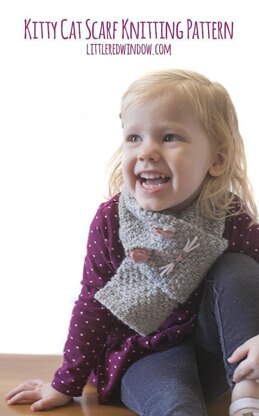 The Kitty Cat Loop Scarf knitting pattern is a fun and easy knit. Your little one will love their cute loop scarf with an adorable little cat face on one end. Loop scarves (literally, a scarf with a loop on one end) are great for kids because they're easy to put on and take off and they STAY on! The pattern includes detailed instructions AND step-by-step photos! As always use common sense when deciding if your child is old enough to wear a scarf and never put anything around the neck of a baby.