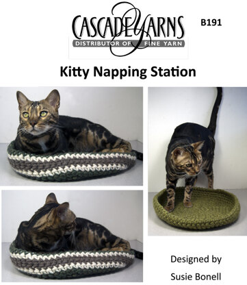 Kitty Napping Station in Cascade Magnum - B191 est un modèle de Crochet Débutant gratuit par Cascade Yarns, disponible au format PDF téléchargeable et comprend des instructions en Anglais. Super amusant à réaliser, ce modèle pourrait être votre prochaine œuvre d'art !