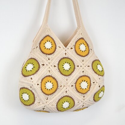 Crochet Fruit Market Bag Pattern - Large Granny Square Tote Bag Crochet Pattern - Fruit Granny Square Pattern