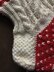 The socks were made with Aran weight, 80% wool/20% polyamide yarn (7 brothers by Novita) which makes them both warm and durable. Three balls of yarn are needed: two of the main color (red) and one of the accent color (white), total (each 219 yards/200 m).