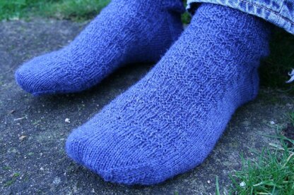 The name for this pattern comes from the chart for the textured pattern. Knitted it looks like a woven design with enough interest to keep the knitter amused but not too tricky to knit. Drawn out on paper the design is formed from a series of L-shapes which resemble the path the knight takes across the chess board. Suitable for both men and women (and sized from 7" foot circumference up to 10" foot circumference) the socks are best made in a solid or semi-solid coloured yarn to allow the texture to show to its best advantage. The fabric is fairly stretchy.