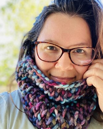 I love the squishy texture of the knit1 below stitch. I featured this stitch in the Knit Below Shawl but wanted to do a cowl as well. Knitting this stitch in the round requires a slightly different technique than knitting flat but the small changes are so worth it for the wonderfully dense and visually appealing texture. This cowl works up quickly using Super Bulky yarn on size 15 needles. Perfect for Christmas gifts for everyone in the family. Grab the softest yarn you can find because you definitely want to be cuddled up with the best!