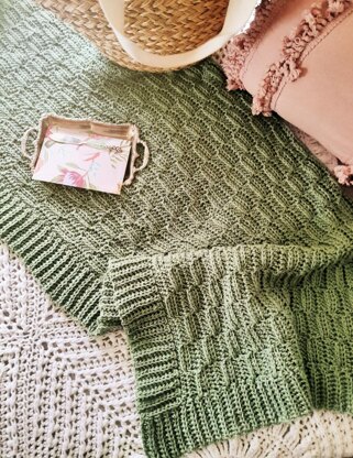 About the Pattern: Inspired by a photo of an actual knitted basketweave blanket I saw online, this crochet version is an absolute pleasure to stitch. The easy, textured design is featured on both sides, making the blanket completely reversible.
