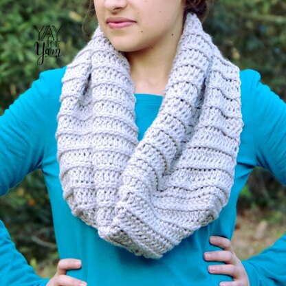 This thick, squishy cowl may look knitted, but it's actually crocheted! Made from a rectangle, it's a quick & easy project that works up in just a few hours.
