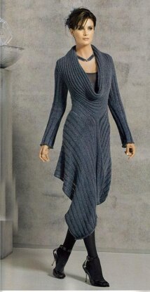 The Romantik knit maxi dress is a cosy high-low hemmed assymetric dress with a ribbed structure. It is long sleeve dress with shawl collar. It`s warm, playful and stylish.