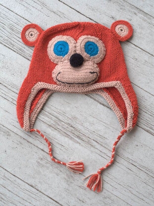 Knit Monkey Hat in Plymouth Yarn Yarnimals Monkey - F655 - Downloadable PDF