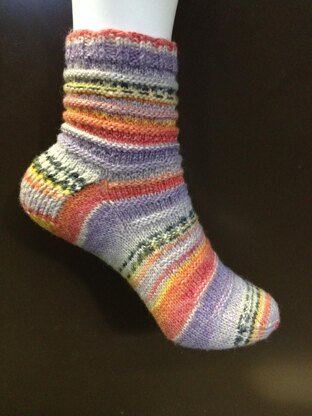 This is a knitting pattern for an ankle length sock. It is knitted in the round with 4 ply sock yarn. The length of the foot can be altered to fit.