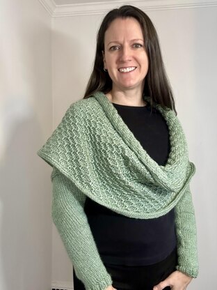 Knit this gorgeous wrap sweater scarf! This pattern combines the comfort of a scarf with the functionality of a sweater, making it the perfect layering piece. The sleeves are knit in stockinette stitch for a classic look and cozy feel, while the body showcases a lovely texture achieved with an easy combination of yarn overs and knitting them together. This project is ideal for intermediate knitters who are looking to expand their skills.