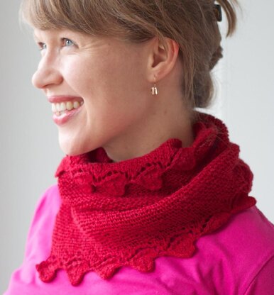 When I got this beautiful yarn with its subtle silky shine, I just knew that its deep, cool red color would be the perfect “plus pink"! I have a lot of pink T-Shirts because it is a very flattering color for me (and many other women, too – you should try it!), and I just knew that a shawlette in this gorgeous Red would go beautifully with those. And when I listened closely, I could hear the yarn whisper: “I want to be hearts! Just in time for Valentine’s day!“ So I complied: This little asymmetric triangular shawlette has a garter stitch body and a line of pretty knitted hearts along one of the short sides, making it just the thing to wear on Valentine’s day – or any day you want to show or feel a little affection.