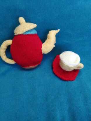 Knitted Teapot and a cup in a saucer ( Mrs. Potts and Chip)