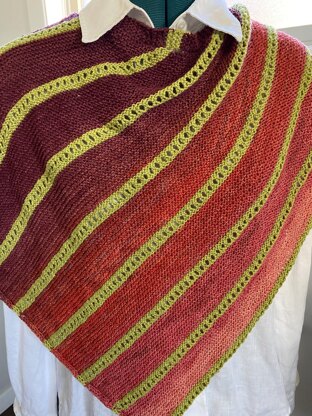 Knitterbug Shawl is a very simple pattern using a few standard knitting elements: garter stitch, yarn-over increases, eyelets, and an I-cord edging. If you are familiar with these elements you will whiz through this pattern. If you are not familiar with any of these, you will be happy to learn these simple and commonly used techniques, and end up with a lovely, functional shawl or scarf.