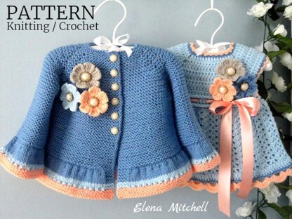 Knitting Crochet PATTERN Baby Jacket Baby Dress 0 - 12 months