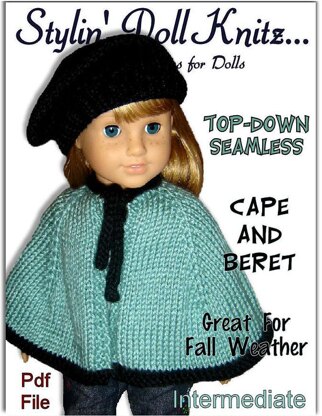 Knitting pattern. Fits American Girl Doll. Cape and Beret, 18 inch
