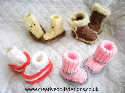 Knitting pattern for 4 types of boots 20-22" Doll, 0-3 Month Baby