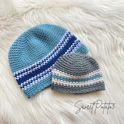 This crochet pattern comes with complete instructions for this Crochet hat that looks like it's Knit! I have always wanted to learn to knit and when I tried it took me forever and didn't look very good. But try this out, it is crochet but has the lovely woven look of a knit beanie. The pattern has sizing from newborn up to adult and includes instructions for adding double stripes or making a solid color hat.