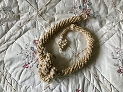 Gorgeous pearls adorn the Knotted Pearl Pendant. Looks stunning paired with your sweater or alone at your neckline. Unique fiber art design. So special and chic! Simple crochet stitches throughout.