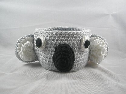 What a cute little container or bowl to put your goodies in. Size: Bowl is 5” wide and 4 1/2” tall 9” wide with ears This pattern has 5 pages of instructions with many pictures. Supplies: 4 ply worsted weight yarn Bowl, outside ear (I used Light Grey in Red Heart Yarn) approx. 160 yards Inside ear, outside eye (I used White in Red Heart Yarn) approx. 15 yards Nose, inside eye (I used Black in Red Heart Yarn) approx. 10 yards G hook Yarn needle A very little amount of Polyfill stuffing (or your choice of stuffing) Please read the entire pattern before beginning. Stitch explanation: (sc) single crochet (ch) chain (sc2tog) 2 sc together (2sc) 2 sc in one sc (F/O) fasten off (*) repeat between * (BLO) back loop only (lp) loop stitch (HDC) half double crochet Magic ring instructions