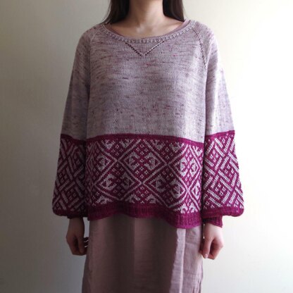 Yarn: Main Colour (MC) (Pink in sample): (731m/799yd, 842m/921yd, 935m/1023yd) [1034m/1131yd, 1152m/1260yd, 1261m/1379yd] of Fingering weight yarn Contrasting Colour (CC) (Purple in sample): (485m/530yd, 540m/591yd, 640m/700yd) [710m/776yd, 821m/898yd, 905m/990yd] of Fingering weight yarn