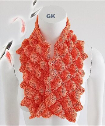 Primarily I have designed a series of dragon and fish scale patterns, based on a similar texture, the Koi is created with updated techniques. The challenge is to complete yarnovers with closing knit or purl either RS or WS, while working on a centralized double decrease.