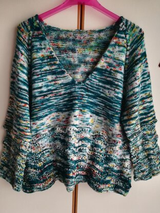 V-neck, top down sweater with lace, length ~58cm.