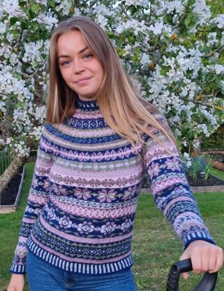Knitted jumper with round yoke and multi-coloured Norwegian pattern.