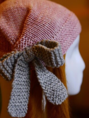 La Farfalla is an adorable girly hat with constrasting color ribbons. It is very simply shaped and comes in a lot of sizes. The ribbons are worked with a rustic yarn to give more contrast in texture.