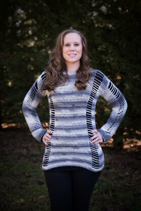 La Maille in French means stitch,ladder, which is exactly the look you get from this sweater! Made with a light sport yarn, this sweater makes a great sweater for the cooler weather!