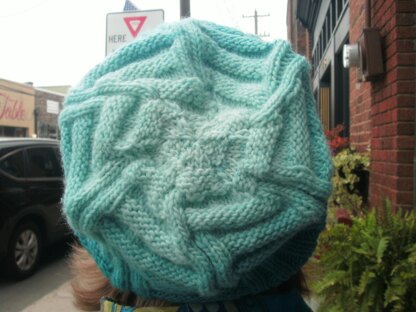Labyrinth is a quirky little hat. A little labor intensive, she's well worth it! This hat is unisex and as written is a ladies medium. For a large man's I suggest going up to a worsted weight yarn and larger needles since the pattern has a 40 stitch repeat.
