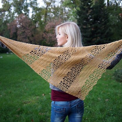 Diagonal lace shawl is simple and elegant, in a slightly asymmetrical triangular shape. It’s fun play of diagonal blocks in 2 different pattern sections which will show beautifully when worn. And just before get bored you have to alternate panels - delicate floral lace with simple plain stitch and vice versa. It can be worn in a multitude of ways. Wrap it around your neck as scarf, wear it like a cowl or bandana, or just throw it over one shoulder to give a pop of color.