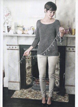 This is a pattern for a lace edge tunic, originally published in Knitting magazine. It is in stocking stitch with a lace border and neck edge. Photo Lauren Guilfoyle for Knitting magazine.