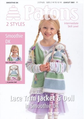 Lace Trim Jacket and Doll in Patons Smoothie DK - 3861 est un modèle de Tricot par Patons, disponible au format Dépliant et comprend des instructions en Anglais. Super amusant à réaliser, ce modèle pourrait être votre prochaine œuvre d'art !