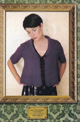 This is a pattern for a Lace Yoke Cardigan, originally published in Knitting Magazine. It is in stocking stitch with a lace yoke, lace edges, a collar and a velvet ribbon tie. Photos Laurel Guilfoyle for Knitting magazine.