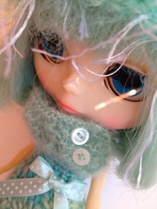 A simple little lacey cowl for your Blythe doll using up tiny amounts of laceweight mohair.