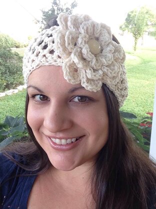 This is a PDF crochet pattern for a light and lacy headwrap in two versions, both narrow and wide. The pattern for the Savannah Rose is included.