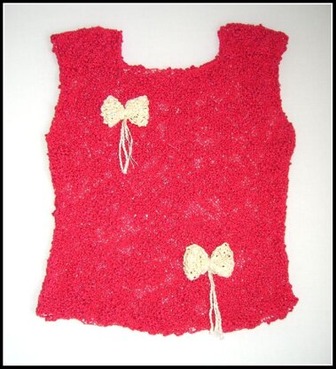 From a collection of 'easy knit' patterns created entirely from a combination of simple knitted squares, this square neck top is a simple but very effective knit embellished with decorative bows.