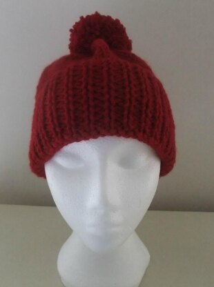 A simple, trendy beanie knitted in chunky yarn on 2 large needles ... The pom pom adds the finishing touch but it can be made without ... Keep warm and stylish at the same time ...