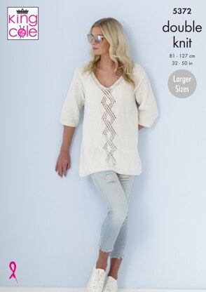 Ladies Sweaters in King Cole Cotton Top DK - 5372 - Downloadable PDF est un modèle de Tricot Intermédiaire par King Cole, disponible au format PDF téléchargeable et comprend des instructions en Anglais. Super amusant à réaliser, ce modèle pourrait être votre prochaine œuvre d'art !