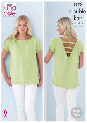 Ladies Tops in King Cole Cotton Top DK - 5370 - Downloadable PDF est un modèle de Tricot Intermédiaire par King Cole, disponible au format PDF téléchargeable et comprend des instructions en Anglais. Super amusant à réaliser, ce modèle pourrait être votre prochaine œuvre d'art !