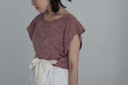 Notes The front and back of this wrap top are knit flat and then seamed together at the shoulders. The two sets of ties are then wrapped around the body to close the side seams. The front ties are created by an I-Cord, which are first wrapped and tied at the back of the wearer. The back tie is one long piece of fabric. This tie, is then brought to the front of the wearer and tied in a knot or bow to finish closing the side seams.