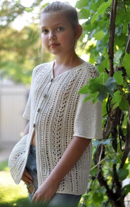 Needles and Materials:– yarn SIŪLAS Lithuanian Linen 3 ply (100% linen; 100 g – 600 m 3.5 oz – 656 yds) – yarn held triple; – knitting needles 3.25 mm US3 or other size to obtain gauge; – 4 (4; 4; 4) (5; 5; 5) (5; 5; 5) buttons of 1 cm 0.4 in diameter; – stitch markers, tapestry needle;