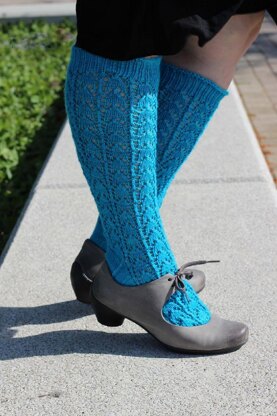 Intrigued by the pattern but concerned about committing to knee highs? Try Perge, a free mid-calf sock featuring the same foot construction and a simpler lace pattern.